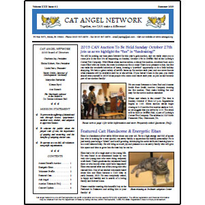 Cat Angel Network (CAN) is a rescue organization in Chester/Montgomery Counties, PA, formed to alleviate suffering of stray cats through rescue, spay/neuter, shelter in a no-kill facility and adoption to approved homes. We strive to educate the public to the proper care of cats and the importance of spaying and neutering. CAN is a no kill, non-profit 501c(3) all volunteer organization.
